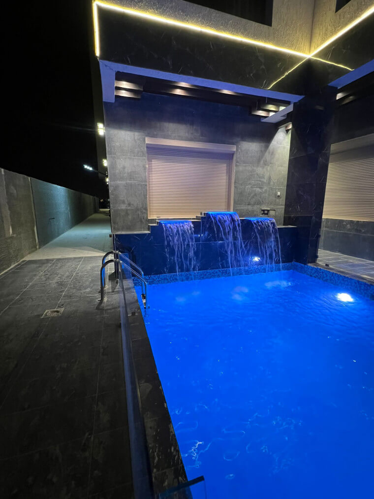 للإيجار شاليه صف أول على البحر مباشره ( 5 صالات + 16 غرفه ماستر + وغرفة طعام + ودوانية + وحمام سباحة).