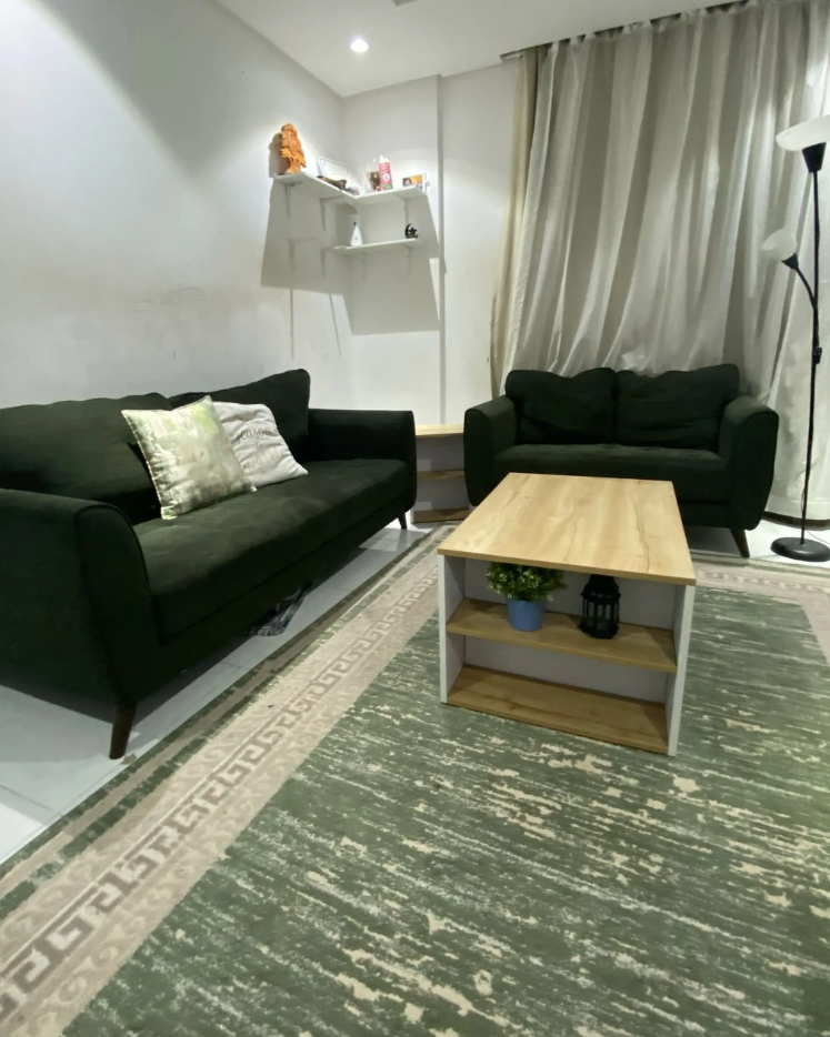 1)طقم كنب مستعمل (3 مقاعد + مقعدين ) مالك اول من Home Center بحالة جيدة جدا بدون اي قطع او كسر او حشرات .
