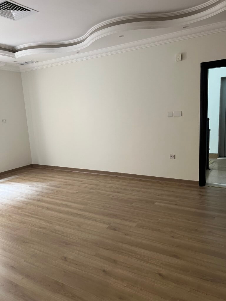 للايجار شقه من ڤيلا في رميثيه ق 9 مدخلومخر سهل الدور الثاني مع مصعد - عبارة عن صاله 4X10 و 3 غرف نوم وحده منهم ماستر 5.5X6 والباجي 4.5X4.5 وغرفه خ مع حمامها وغرفة غسيل و 3 حمامات \" المجموع 4 حمامات\" ومصفطين بجانب بعض والمطلوب عايله صغيره الايجار من المالك مباشرة 550 دك