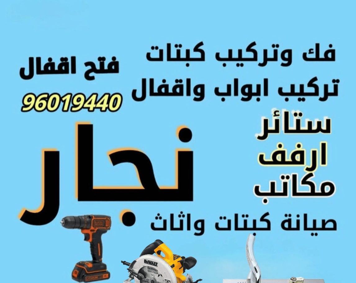 ،نجار جميع الخدمات فك وتركيب الاثاث الصيانة تركيب الابواب تركيب اقفال فتح ابواب . تركيب ارفف . خزائن عمل بارتيشن خشب