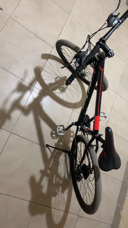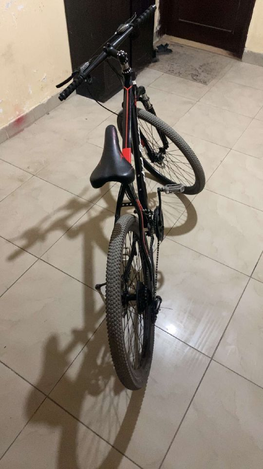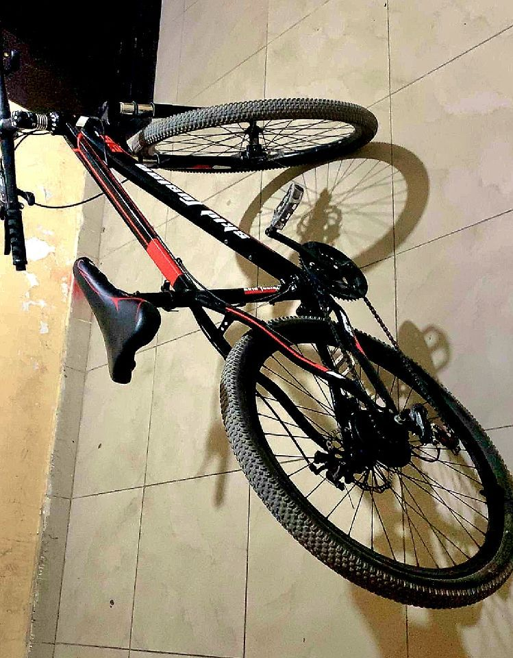 السيكل من شركة Skid Fusion قياس 26 المكينة الخلفية 7 سرعات و الامامية 3 سرعات مبدل دواساتة من بلاستك للحديد لحالها حقها 6 دنانير و نص