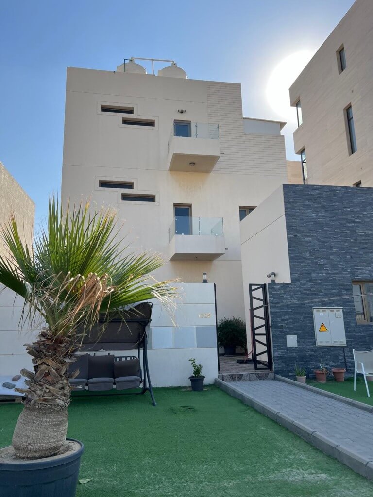 للبيع شالية صباح الاحمد البحرية المرحلة الرابعة صف اول مساحة 450 متر دورين وربع يوجد حمام سباحة خارجي و 5 غرف نوم منهم ماستر وغرفة خارجية بسعر 370 الف للاستفسار
