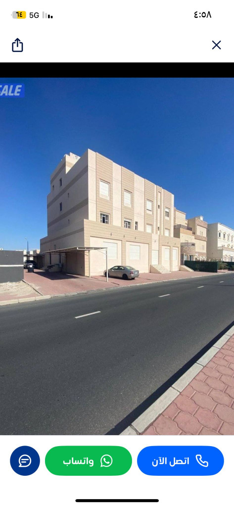 للبيع قسيمه بمدينة صباح الأحمد قطاع D1 راس ثلاث واجهات وارتداد ٥٠ متر مقابل الخدمات ثلاث أدوار وربع الاخير شقتين تشطيب ممتاز سكن المالك