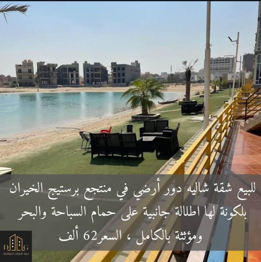 للبيع شقة شاليه دور أرضي في منتجع عائلي في الخيران المرحلة الأولى ، مكون من ٣ غرف وغرفة خادمة و٣ حمامات وصالة ومطبخ مجهز وبلكونة مفروس بالكامل ومجهز حمامات سباحة وجلسات خارجية ومواقف خاصة في السرداب السعر ٥٨ ألف عقد بيع مصدق في المحكمة والتسليم فوري وجاهز للسكن أو الأستثمار للجادين رجاءءءءءءءء