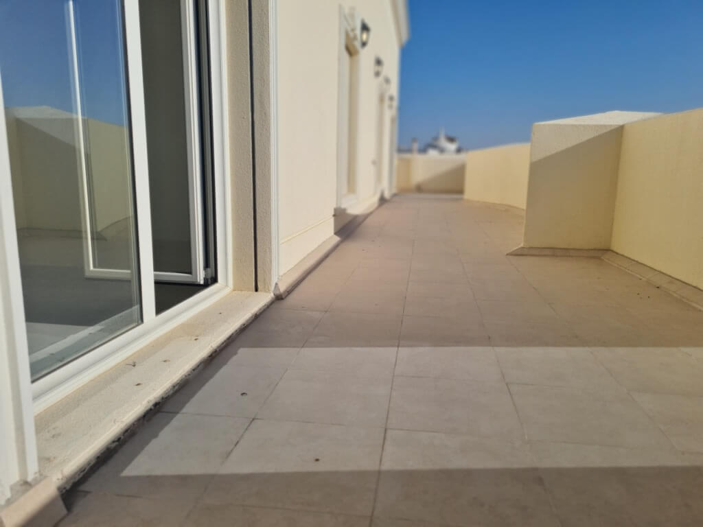 للاجار شقة جميلة جدا مع تراس كبير ثلاث غرف غرفة خادمة حمام للضيوف صالة مطبخ مجهز واسع شترات لكل الشبابيك تكييف سنترال مصعد للتواصل على الواتس