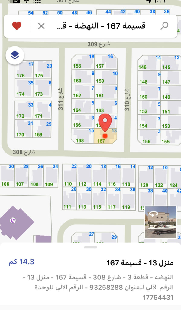 للبيع بيت زاوية ( شرقية / جنوبيه) ، مدخل ومخرج سهل ، دورين ونصف ، مساحة 400 متر ، النهضة ق 3 ، ش 310-308 منزل 167 ( الرقم الآلي 93258288 ) شارع داخلي نافذ ، قريب من المسجد ، تكييف سنترال سكن المالك ، بناء 2012 سيجما 400 الف دينار شركة يمامة الخير العقارية - بواحمد واتساب