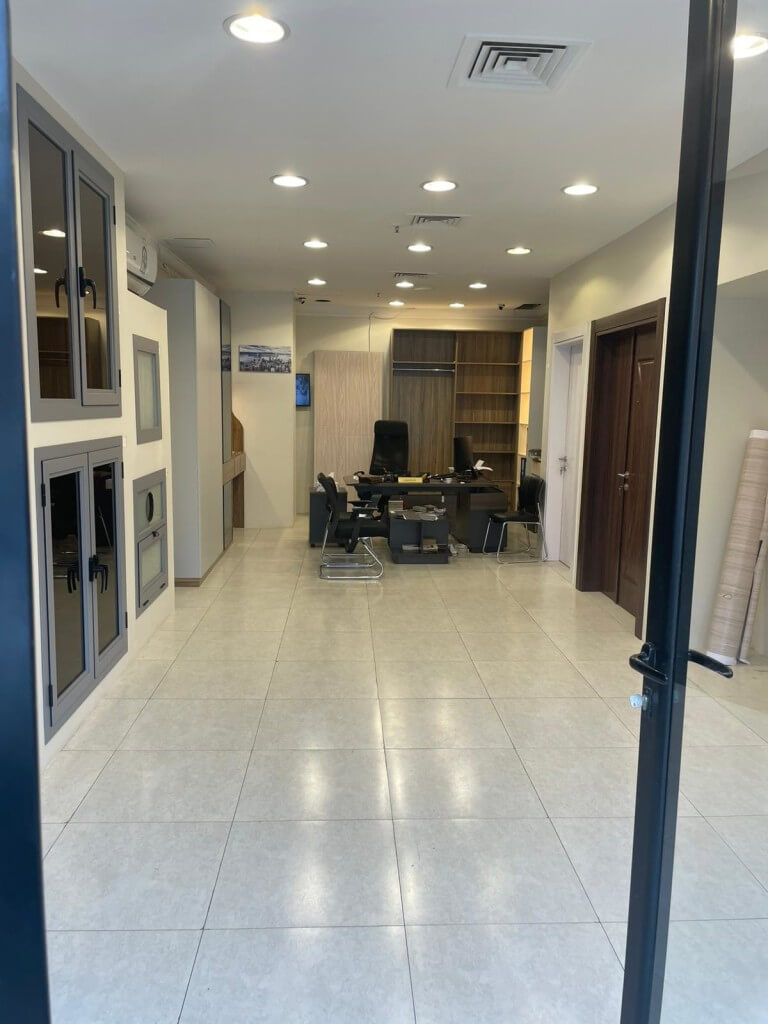 للبيع محل بالري مجهز بالكامل عينات من المنيوم وخزائن حائط ابواب مع مكتب اداري وديكورات وكامرات مساحته 50م2 ايجاره 1100