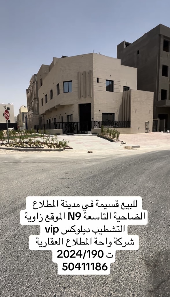 للبيع قسيمة vip بالتشطيب دورين ونص في الضاحية التاسعه N9 أرضي والأول شقتين والأخير شقه مع روف الموقع زاوية مقابل ساحة وقريب ع رواق المنطقة مدخل ومخرج سهل - واحة المطلاع العقارية 2024/190 الواجهات بالكامل سان ماركو - متوفر في القسيمة ثلاث شقق