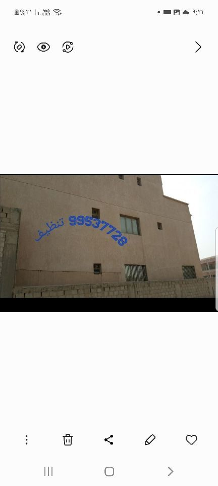 تنظيف شامل للمنازل والشقق والمجمعات والمدارس والمساجد والجواخير والشاليهات وجلي وتلميع ارضيات الرخام والكاشي والميزاييك والدرج وتنظيف الواجهات الخارجية وتنظيف ارضيات السيراميك من بقايا الصبغ والجبس والصمغ وتنظيف الدرايش والمطابخ من الدهون وقسم خاص لمكافحة الحشرات والطيور خدمة استقبال الطلبات ٢٤ ساعة متوفر عمالة رجالية فقط للإستفسار ٩٩٥٣٧٧٢٨
